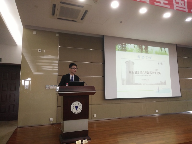 郑树森院士则从自己亲自指导的几个优秀八年制学生讲起,对八年制医学生给予了充分的肯定并寄予厚望。接着,方向明副院长介绍了浙江大学临床医学八年制“八年一贯,两段完整”的4+4(即四年非医学本科教育和四年医学教育)培养模式和注重实效的实践教学模式。论坛组委会代表、浙江大学2011级临床医学八年制范嘉祺同学满怀深情地回顾了第五届全国八年制医学生论坛的筹备过程,并对学校及医学院领导老师的大力支持和工作人员们的辛勤付出表示感谢。