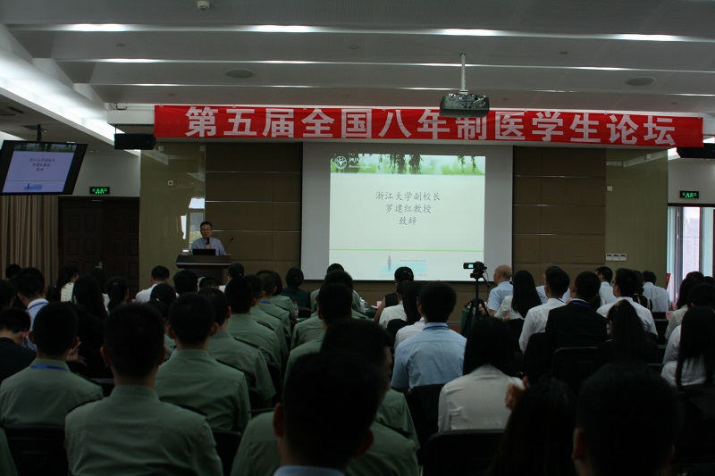 罗建红副校长代表浙江大学,对论坛的召开表示热烈的祝贺,对莅临会议的各位领导、各位专家和来自全国十三所高校的八年制学生代表表示热烈的欢迎和诚挚的感谢。罗建红副校长向代表们介绍了浙大的悠久历史和发展现状。在致辞中,他还强调了建立高素质医学卫生人才培养模式的必要性和重要性,并对参加本届论坛的八年制同学们寄予了殷切期望和祝福。