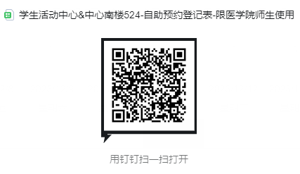 华家池学生活动中心、中心南楼524即日起均使用下方钉钉表格进行自助预约。